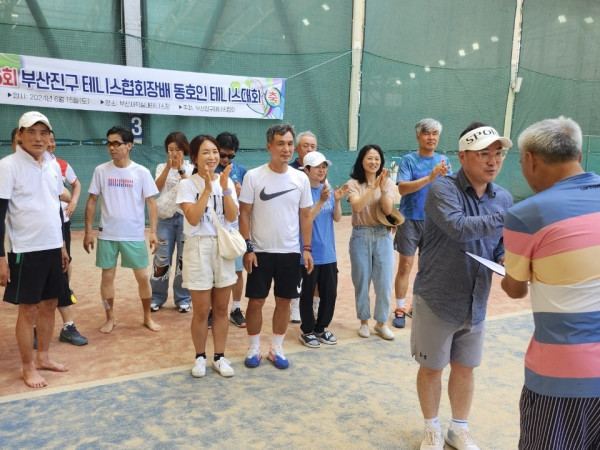 (2024. 6. 15.) 제36회 부산진구테니스협회장배 동호인 테니스대회 페이지 정보 작성일 24-06-24 13:40 본문 ◎홍배우승 : 테오A준우승 : 유니스A공동 3위 : 테오B , 부산진구청 ◎청배우승 : 불나비준우승 :국제백양B3위 : 청송 목록 이전글(2024. 6. 22.) 제31회 부산진구청장배 태권도대회 24.06.24 다음글(2024. 6. 11.) 제22회 부산진구청장배 게이트볼대회 24.06.24